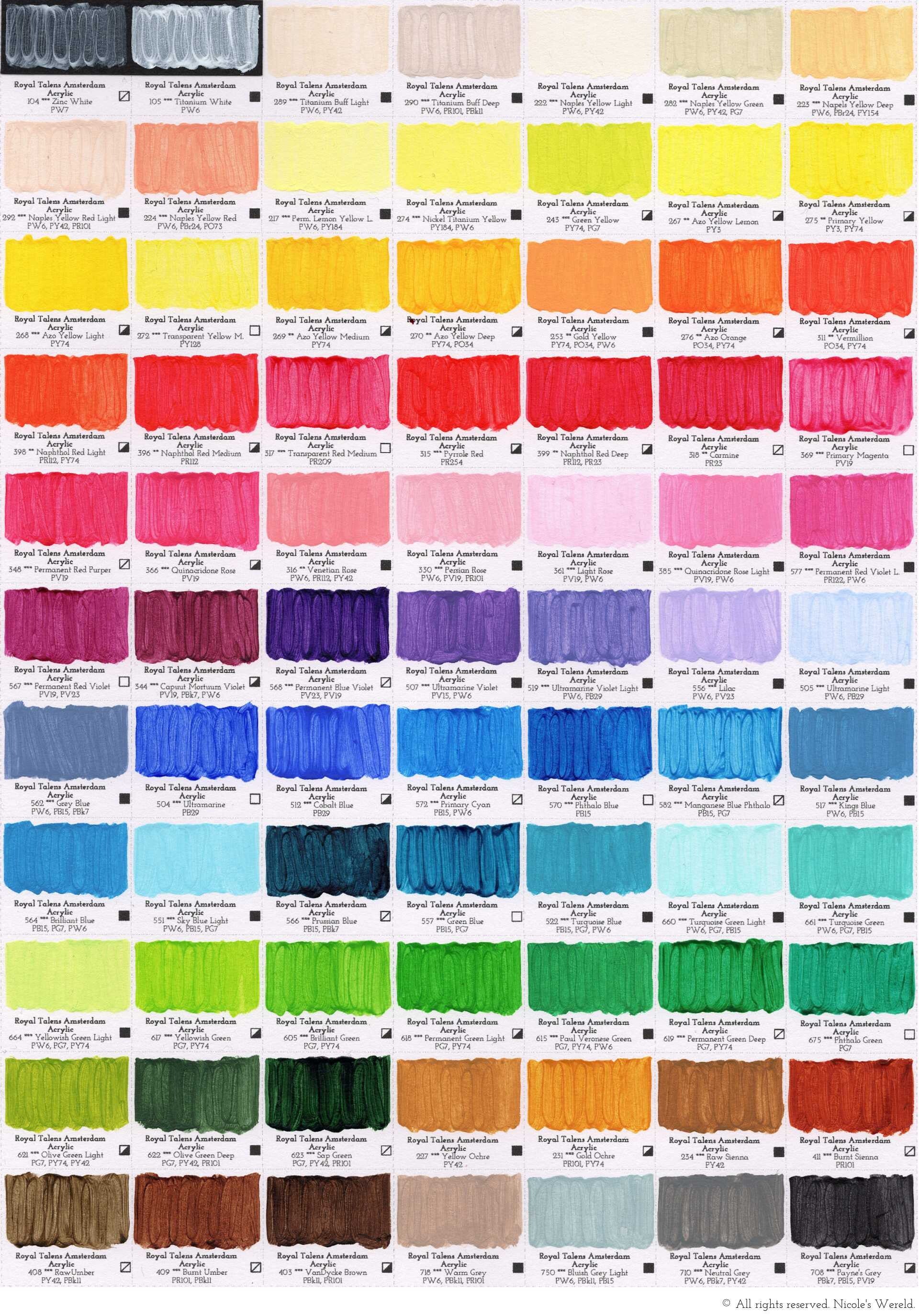 Je vindt de gehele kleurenrange van Amsterdam hieronder. Omdat de kleurenkaartjes zijn ingescand, kunnen de kleuren net anders uitvallen dan in het echt. Ik heb mijn best gedaan om de kleurenkaartjes zo goed mogelijk te laten matchen met de realiteit.