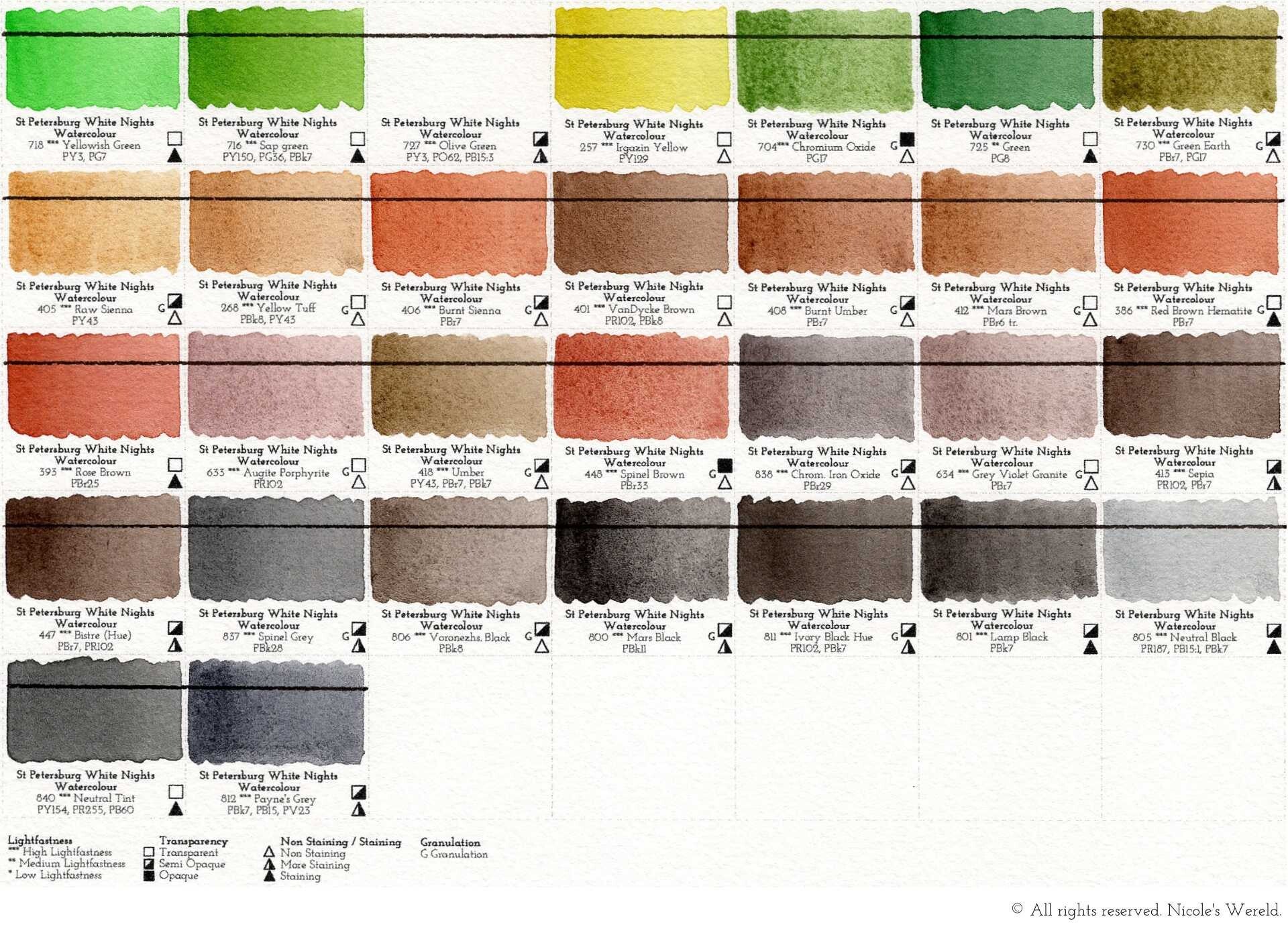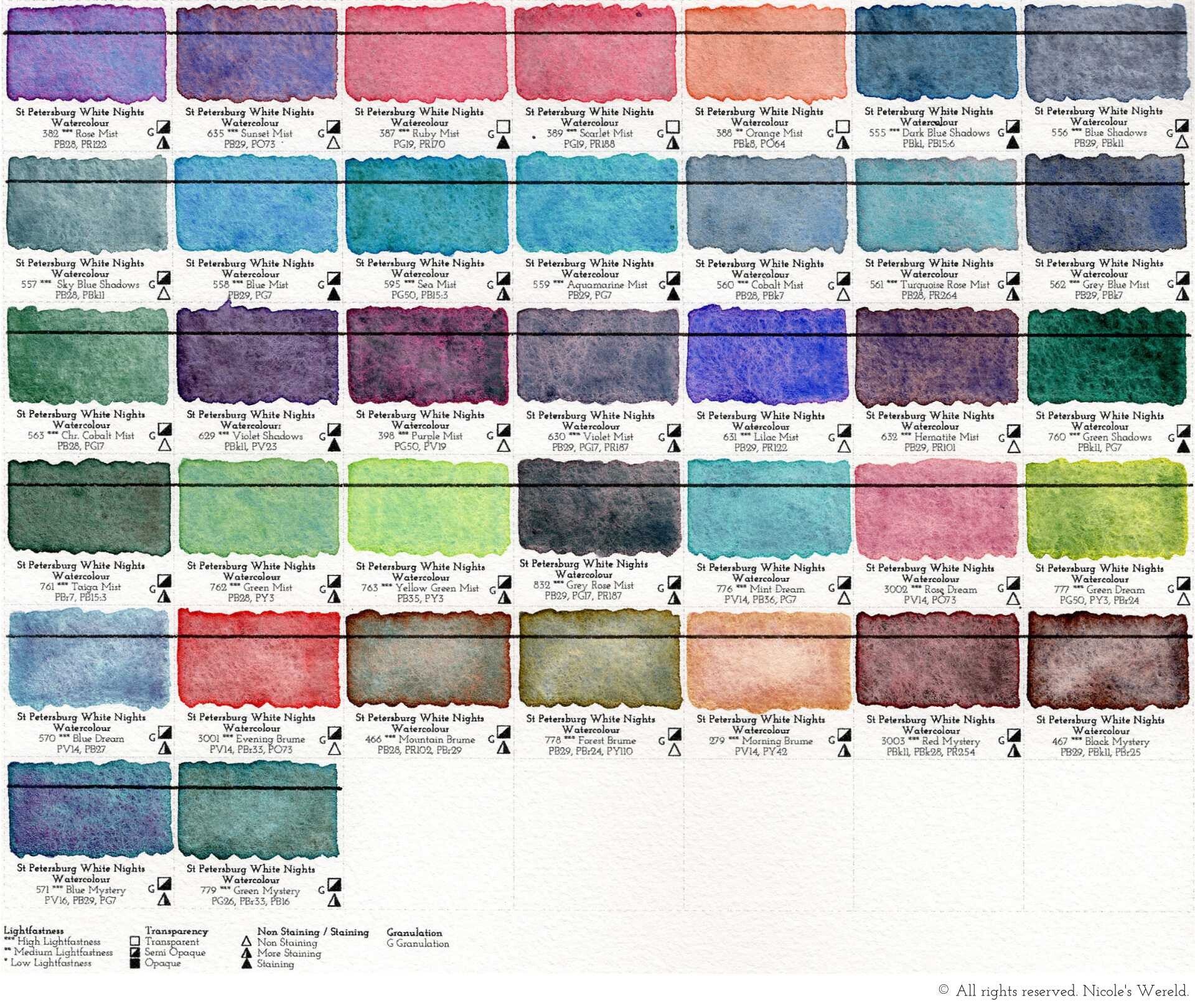 Kleurenkaart en swatches St. Petersburg White Nights aquarelverf