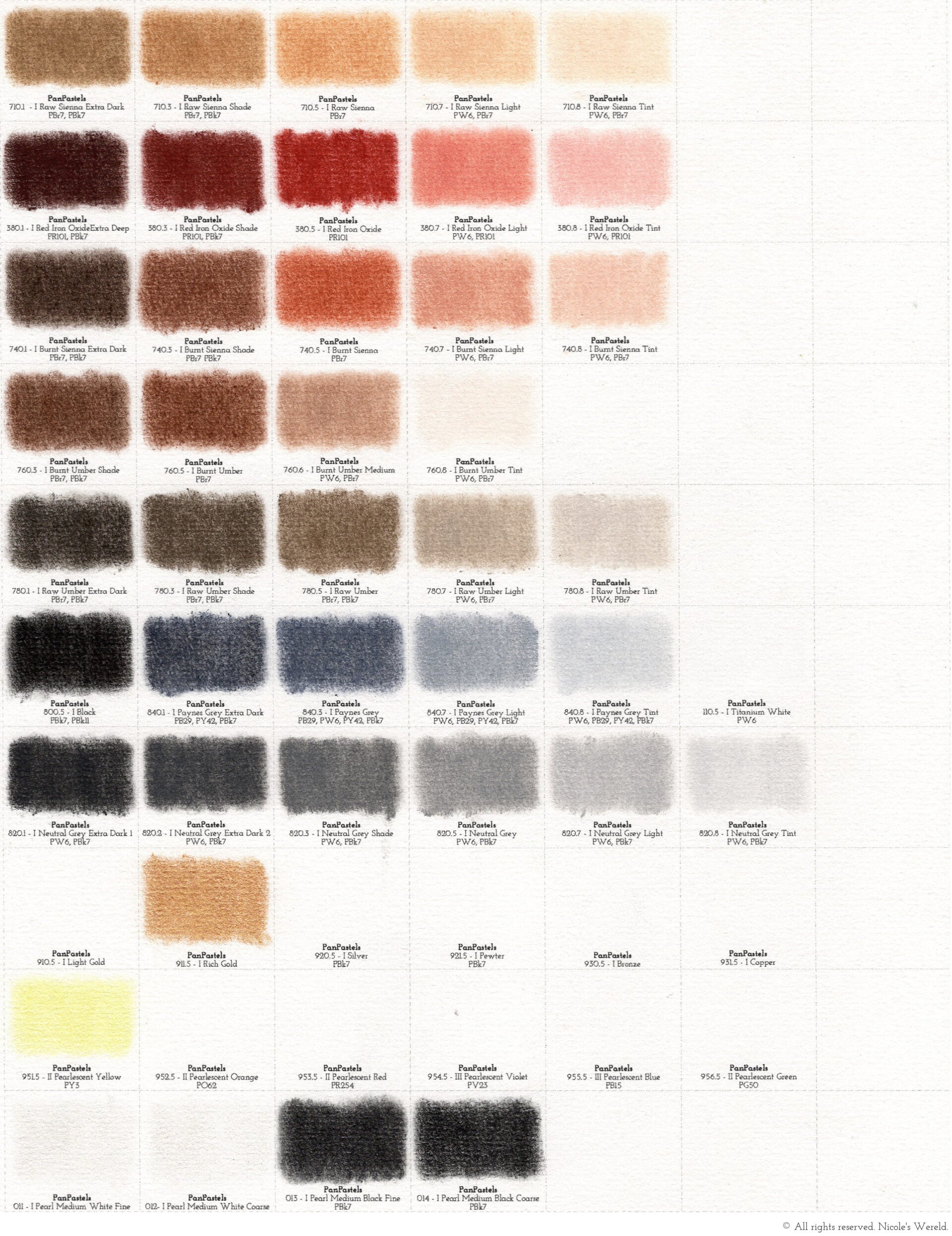Natuurlijk worden soms recepten van de kleuren PanPastel kleurenpalet aangepast of verdwijnen en ontstaan nieuwe kleuren. Hieronder vind je een overzicht van de kleuren die ik heb uit eerdere series van de Panpastels.
